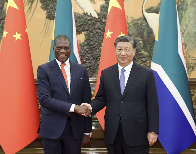 習(xí)近平強(qiáng)調(diào),中方支持南非探索符合本國國情的現(xiàn)代化道路,愿同南非進(jìn)一步夯實(shí)政治互信基礎(chǔ),提升互利合作水平。中方愿同南非等非洲國家一道,落實(shí)中國支持非洲工業(yè)化、農(nóng)業(yè)現(xiàn)代化、人才培養(yǎng)三項(xiàng)舉措以及高質(zhì)量共建“一帶一路”的八項(xiàng)行動(dòng),打造一批高標(biāo)準(zhǔn)、惠民生、可持續(xù)的合作項(xiàng)目,提升中非合作的戰(zhàn)略性和可持續(xù)性,推動(dòng)構(gòu)建高水平中非命運(yùn)共同體。雙方應(yīng)繼續(xù)密切在金磚國家機(jī)制內(nèi)合作,加強(qiáng)發(fā)展中國家團(tuán)結(jié)合作,推動(dòng)全球治理體系朝著有利于發(fā)展中國家的方向發(fā)展。