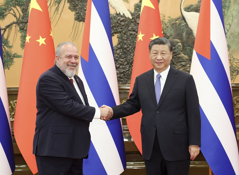 11月6日下午,國家主席習(xí)近平在北京人民大會堂會見古巴總理馬雷羅。 新華社記者 丁海濤 攝