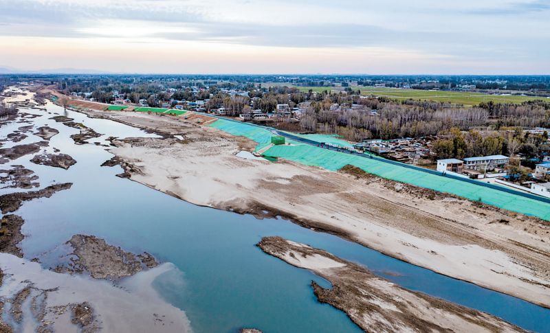 11月10日,航拍的白溝河治理工程(涿州段)。河北日報記者 李東宇攝