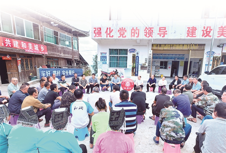 貴州省榕江縣通過“榕易談”、“院壩協商”等工作機制,廣泛聽取民意民聲,激發基層黨組織活力和群眾發展內生動力。圖為該縣平江鎮滾仲村干部群眾共商村寨產業發展、環境美化等問題。圖片來源:視覺中國