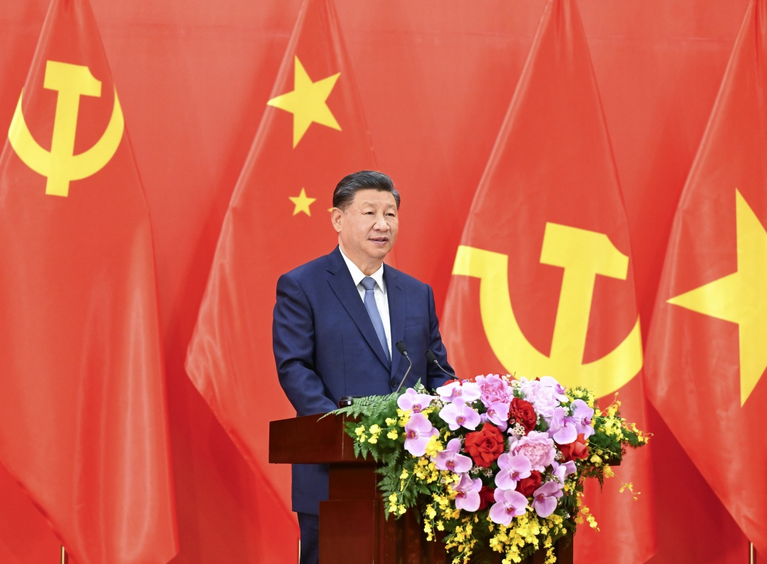 昨天,我同阮富仲總書記一道宣布構建具有戰略意義的中越命運共同體,開啟了中越兩黨兩國關系發展新階段。這是我們從振興世界社會主義和實現中越兩國長治久安出發作出的重大戰略決策,深深植根于中越傳統友好,符合兩國人民共同利益和共同愿望。