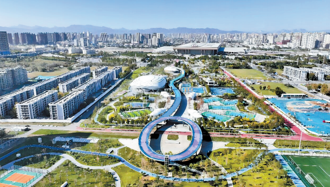 近日拍攝的石家莊高鐵片區中央綠色體育公園。河北日報記者 史晟全攝