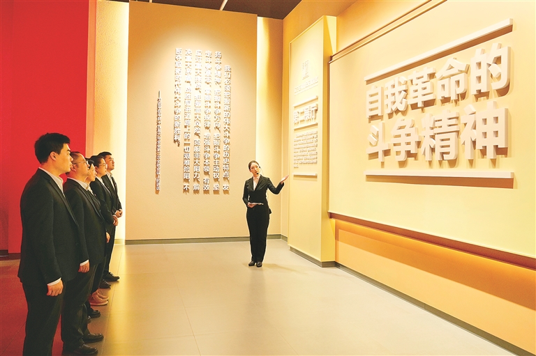 遼寧正風肅紀反腐展覽以黨的自我革命為主題,通過文字、圖片、浮雕和視頻短片等形式,展現了我們黨勇于自我革命的實踐成果。圖為日前,阜新銀行股份有限公司組織黨員干部參觀該展覽。 常珂 攝