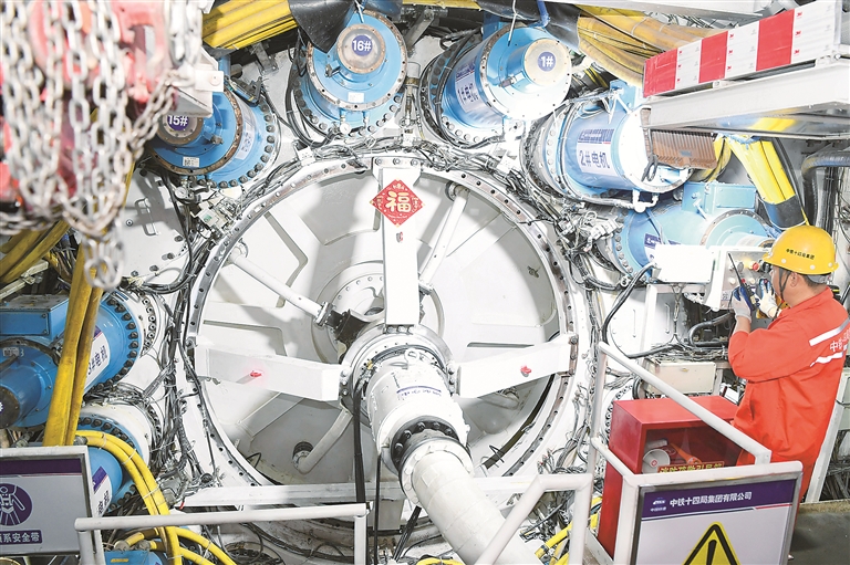 重慶長江隧道全長約11.9千米,是第一條穿越長江的高鐵盾構隧道,被譽為“萬里長江高鐵第一隧”。圖為春節前夕,中鐵十四局建設者們繼續堅守崗位,加速推進項目建設。新華社記者 王全超 攝