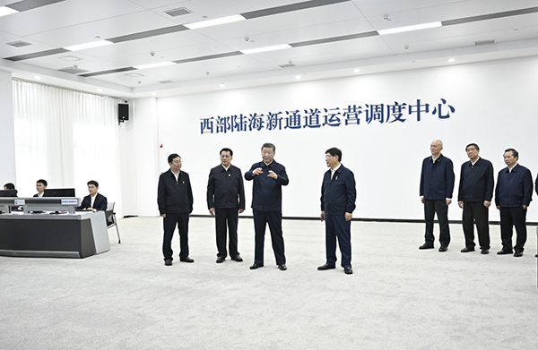 4月22日至24日,中共中央總書記、國家主席、中央軍委主席習近平在重慶考察。這是22日下午,習近平在重慶國際物流樞紐園區西部陸海新通道重慶無水港運營調度中心考察。新華社記者 岳月偉 攝