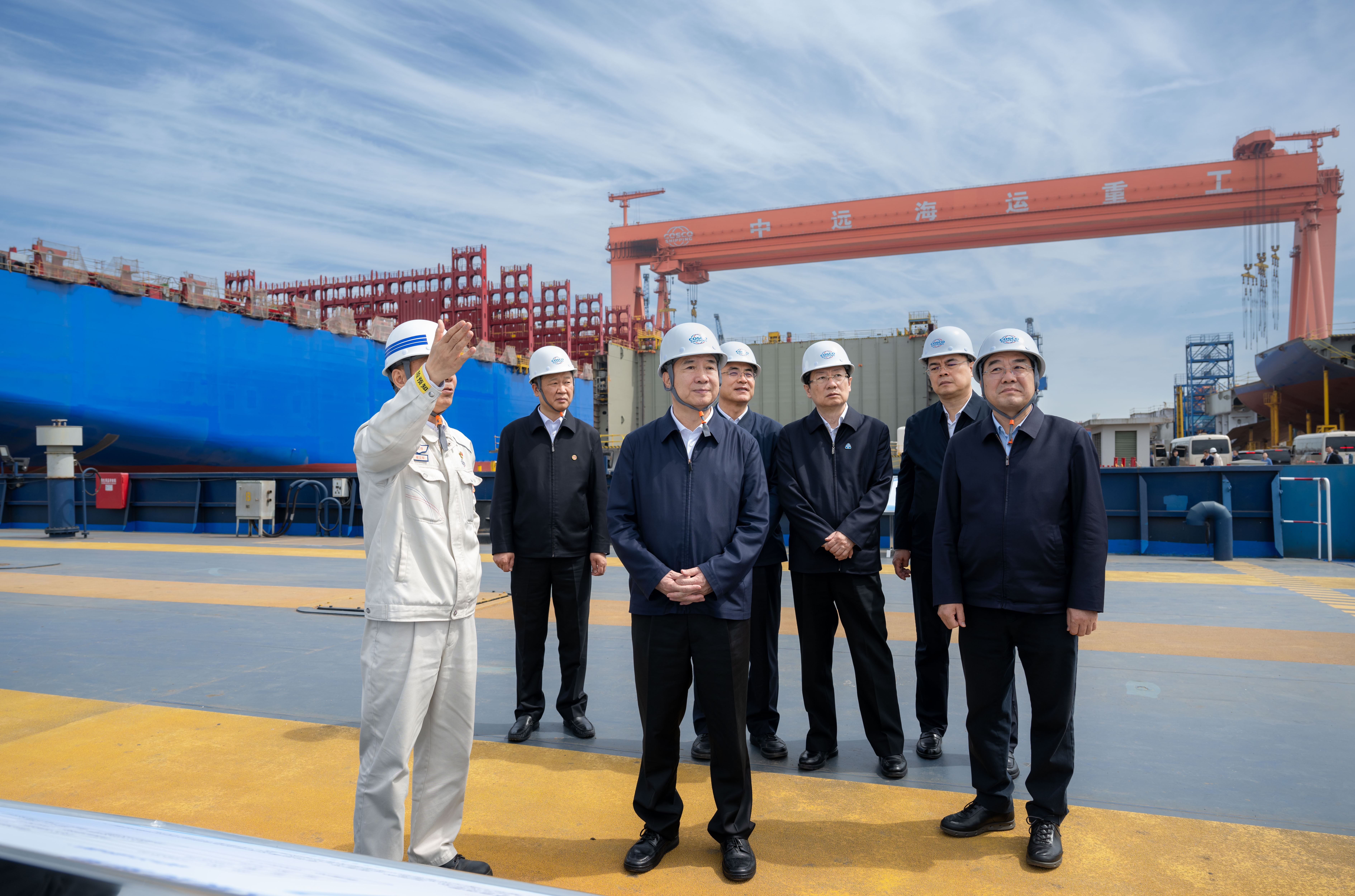 4月22日至25日,中共中央政治局常委、中央紀(jì)委書記李希到江蘇調(diào)研。這是4月24日,李希在揚(yáng)州中遠(yuǎn)海運(yùn)重工有限公司調(diào)研。新華社記者 翟健嵐 攝