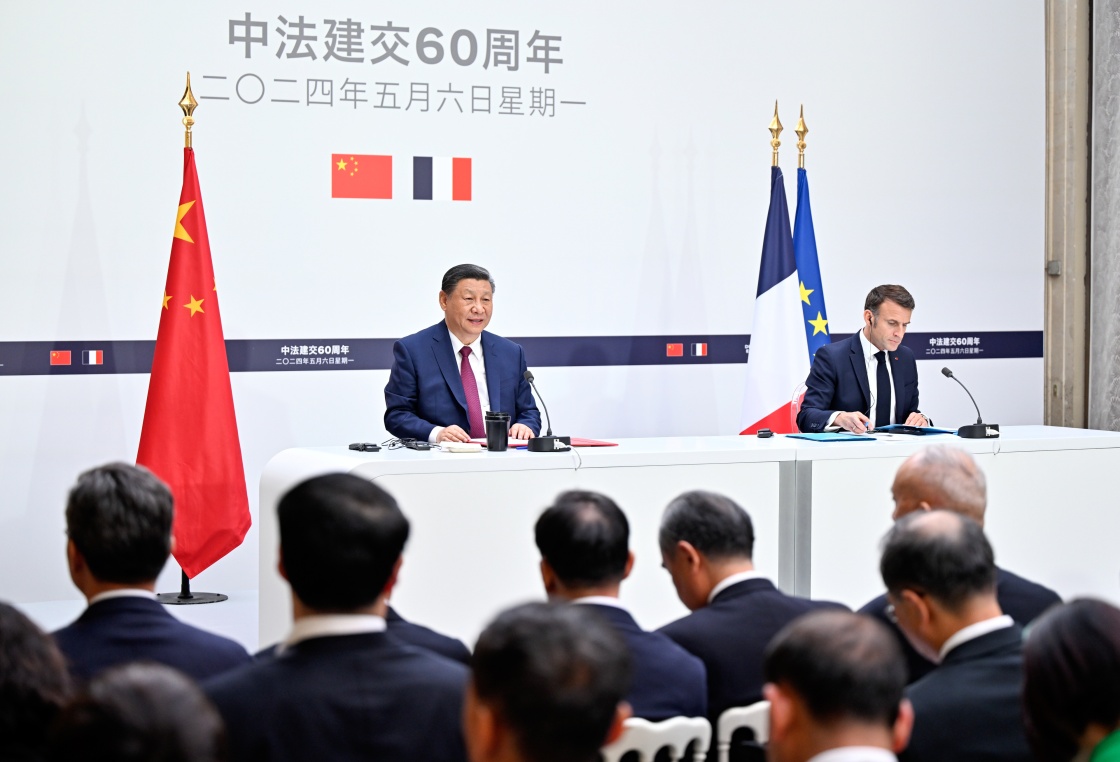 習近平指出,很高興應馬克龍總統邀請,在中法建交60周年之際,再次對法國進行國事訪問。我同馬克龍總統舉行了富有成果的會談。我們一致認為,中法關系具有珍貴歷史、獨特價值和重要使命,雙方要傳好歷史的接力棒,弘揚中法建交精神并為其賦予新的時代內涵,開啟中法關系下一個60年的新征程。