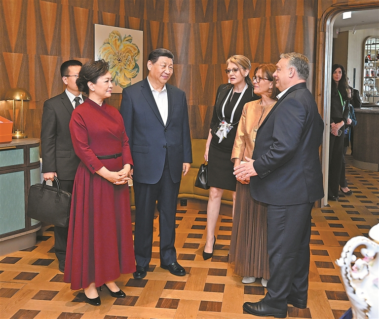 當地時間5月10日中午,國家主席習近平和夫人彭麗媛在布達佩斯應邀出席匈牙利總理歐爾班和夫人舉行的餞行活動。 新華社記者 謝環馳 攝
