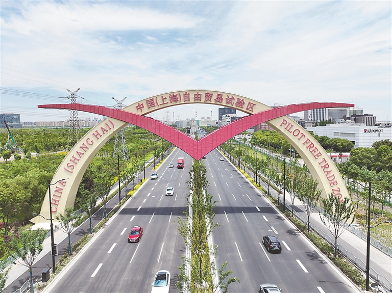 當前全球數(shù)字經(jīng)濟、綠色貿(mào)易等蓬勃發(fā)展,自貿(mào)試驗區(qū)以制度創(chuàng)新為核心的改革探索,對在新興領域增強中國話語權、貢獻中國智慧意義重大。圖為位于上海外高橋保稅區(qū)的中國(上海)自由貿(mào)易試驗區(qū)的標志“海鷗門”。圖片來源:視覺中國