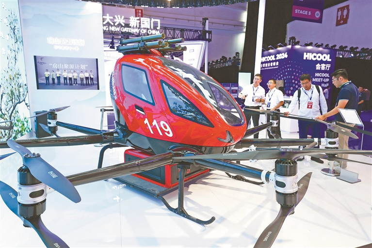 8月23日,HICOOL2024全球創(chuàng)業(yè)者峰會(huì)在北京·中國國際展覽中心(順義館)開幕。今年峰會(huì)以“新質(zhì)引領(lǐng) 創(chuàng)新共融”為主題,來自國內(nèi)外眾多科技創(chuàng)新企業(yè)集中亮相。圖為參觀者正在觀看應(yīng)用于高層建筑消防滅火的消防版無人駕駛航空器。 圖片來源:視覺中國