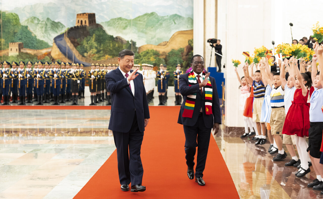 9月3日下午,國家主席習近平在北京人民大會堂同來華出席中非合作論壇北京峰會并進行國事訪問的津巴布韋總統姆南加古瓦舉行會談。