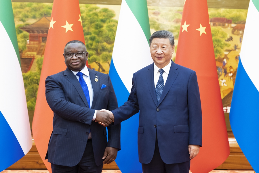 9月4日上午,國家主席習近平在北京人民大會堂會見來華出席中非合作論壇北京峰會的塞拉利昂總統比奧。