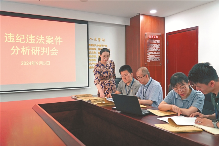 上海市寶山區紀委監委充分運用綜合研判機制,加強對違紀違法案件的分析研究,把牢案件處置關。圖為該區第四紀檢監察室聯合案件審理(法規)室對涉嫌違法犯罪黨員的黨紀處分進行研究討論。王曉云 攝