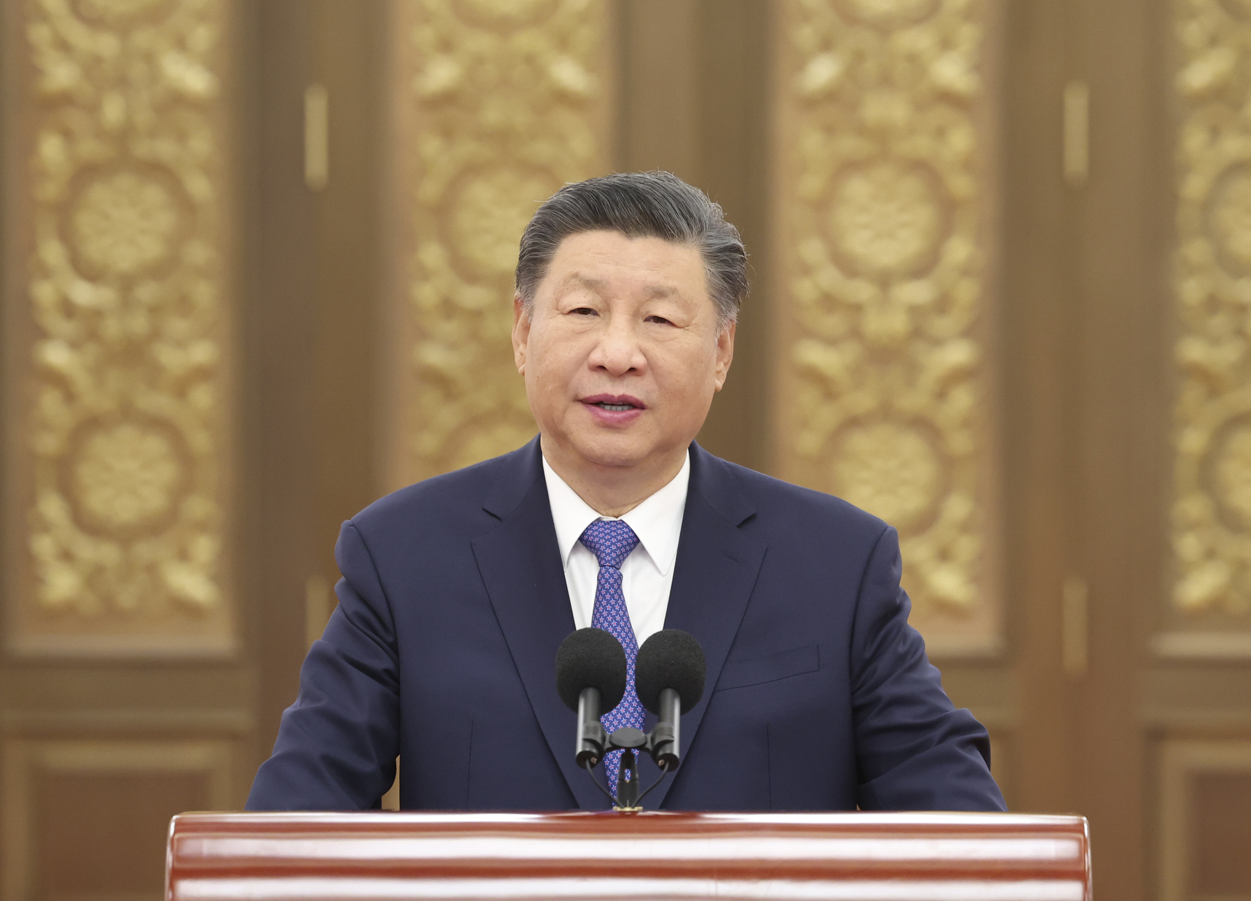 9月23日,黨和國家領導人習近平、李強、趙樂際、王滬寧、蔡奇、丁薛祥、李希等在人民大會堂接見探月工程嫦娥六號任務參研參試人員代表并參觀月球樣品和探月工程成果展覽。這是習近平發表重要講話。 新華社記者 鞠鵬 攝
