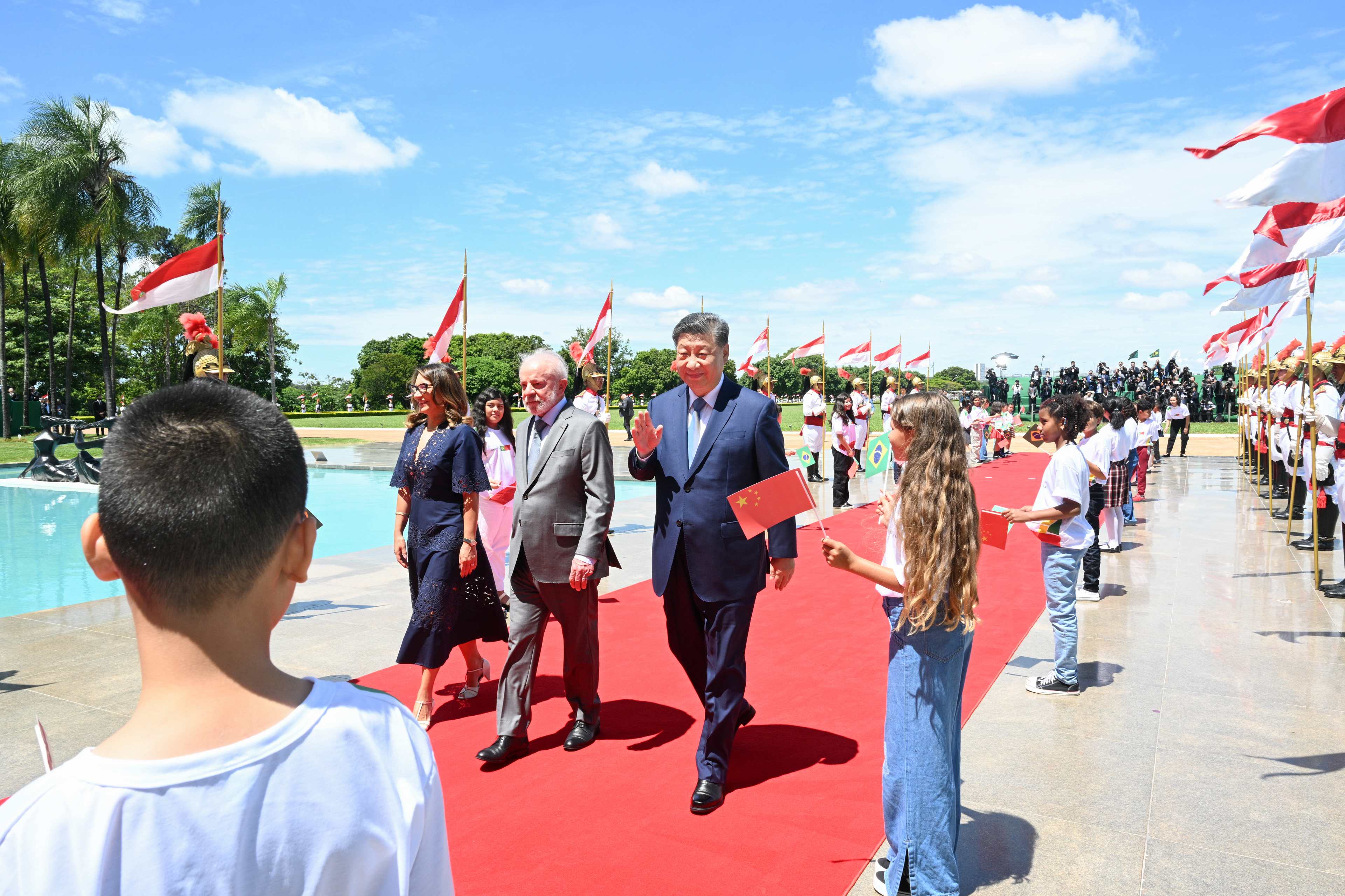 習(xí)近平指出,很高興在中巴建交50周年這個(gè)具有重要?dú)v史意義的年份訪問巴西。剛才盧拉總統(tǒng)為我舉行最高禮遇的隆重歡迎儀式,充分體現(xiàn)了對中巴關(guān)系的高度重視以及對中國人民的深情厚誼,令我深受感動。中國和巴西是東西半球兩大發(fā)展中國家。回首過去50年,中巴關(guān)系跨越山海,探索出發(fā)展中大國相互尊重、互利友好、合作共贏的正確相處之道。巴西是首個(gè)同中國建立戰(zhàn)略伙伴關(guān)系的國家、首個(gè)同中國建立全面戰(zhàn)略伙伴關(guān)系的拉美國家。近年來,在我和盧拉總統(tǒng)戰(zhàn)略引領(lǐng)下,兩國日益成為命運(yùn)與共的可靠朋友、共促和平的積極力量,中巴關(guān)系正處于歷史最好時(shí)期,不僅增進(jìn)了兩國人民福祉,也維護(hù)了廣大發(fā)展中國家共同利益,壯大了全球南方的力量和聲音,為世界和平穩(wěn)定作出突出貢獻(xiàn)。