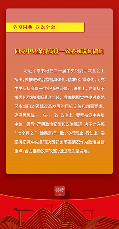 學習詞典·四次全會丨同黨中央保持高度一致必須說到做到