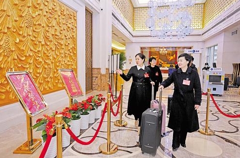 1月11日,出席省十四屆人大三次會議的省人大代表,陸續抵石報到。 本報記者 張昊攝