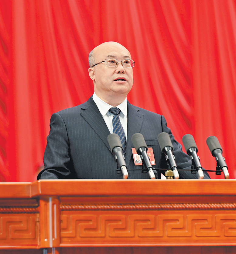 王正譜作政府工作報(bào)告。 記者 霍艷恩攝
