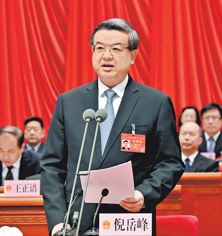 上午9時(shí),倪岳峰宣布:河北省第十四屆人民代表大會(huì)第三次會(huì)議開(kāi)幕。會(huì)場(chǎng)全體起立,高唱國(guó)歌。