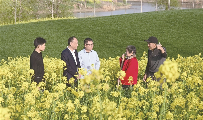 圖為姜永輝(左二)在田間地頭調研了解整治群眾身邊不正之風和腐敗問題工作情況。尤亞輝 攝(資料圖片)