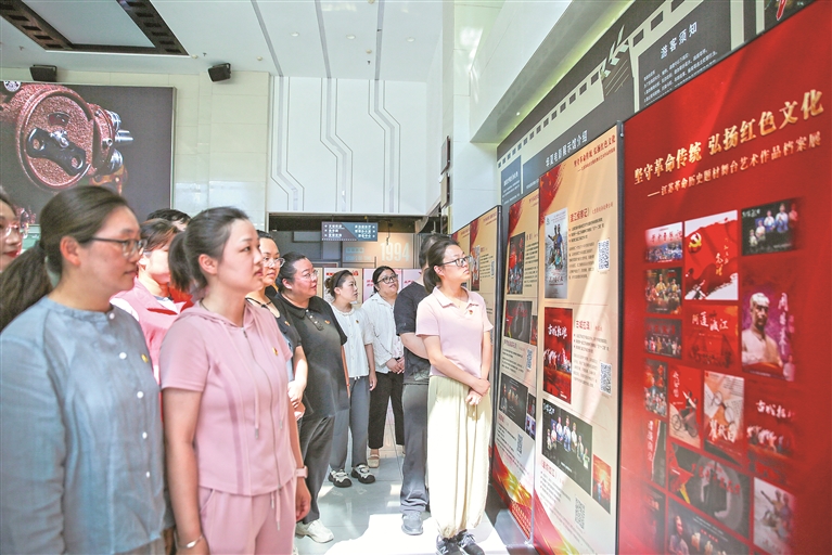 6月28日,江蘇南通,黨員干部來到華夏電影展示館參觀,在回望黨的光輝歷程中感悟初心使命,堅(jiān)定理想信念。 圖片來源:視覺中國