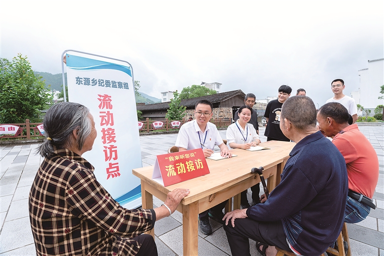 福建省柘榮縣紀(jì)委監(jiān)委不斷拓寬群眾監(jiān)督渠道,推動(dòng)解決群眾反映強(qiáng)烈的突出問題。圖為近日,該縣紀(jì)檢監(jiān)察干部在東源鄉(xiāng)水滸廣場開展流動(dòng)接訪。袁鑌 攝