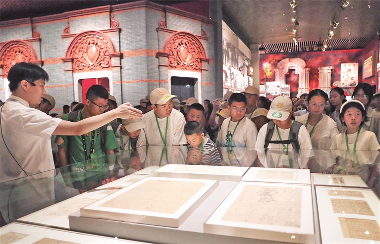 紅色資源是我們黨優良傳統和革命精神的載體和結晶,對于引導青少年樹立正確的世界觀、人生觀、價值觀具有重要意義。圖為7月25日,青少年在中國共產黨歷史展覽館內接受教育。 圖片來源:視覺中國