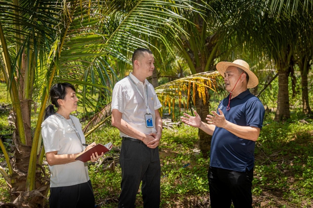 圖為海南省文昌市紀委監委工作人員正在對農戶椰子苗管護費發放情況開展“回頭看”。郭冰 攝