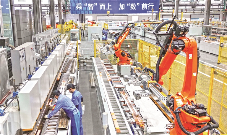 黑龍江省哈爾濱市把科技創新作為產業躍遷動力,讓“哈爾濱智造”在傳統裝備制造業領域綻放新光。圖為哈爾濱電機廠智能制造車間內,工人在進行生產作業。新華社發