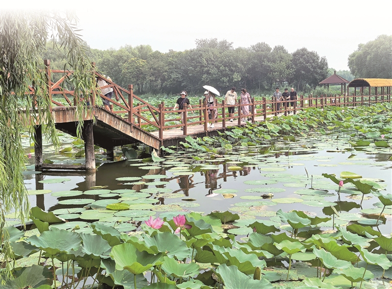 先植綠、后建城,是雄安新區的城市建設理念。雄安新區設立后,白洋淀迎來有史以來最大規模的系統性生態治理。圖為游客在雄安新區白洋淀景區游覽。圖片來源:視覺中國