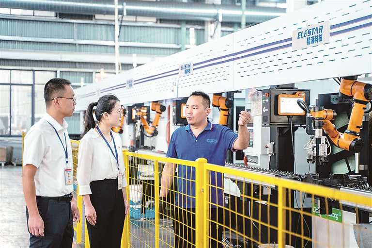 福建省柘榮縣紀委監委搭建紀企“親清”直通橋梁,緊盯政策落實、涉企服務等開展監督檢查。圖為該縣紀檢監察干部在某精工制造企業了解相關情況。袁鑌 攝