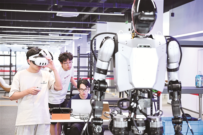 江蘇省常熟經開區深化“高效辦成一件事”等改革,以優質服務換企業高效產出。圖為工作人員正在國家地方共建人形機器人創新中心常熟分訓練場“訓練”機器人。圖片來源:視覺中國