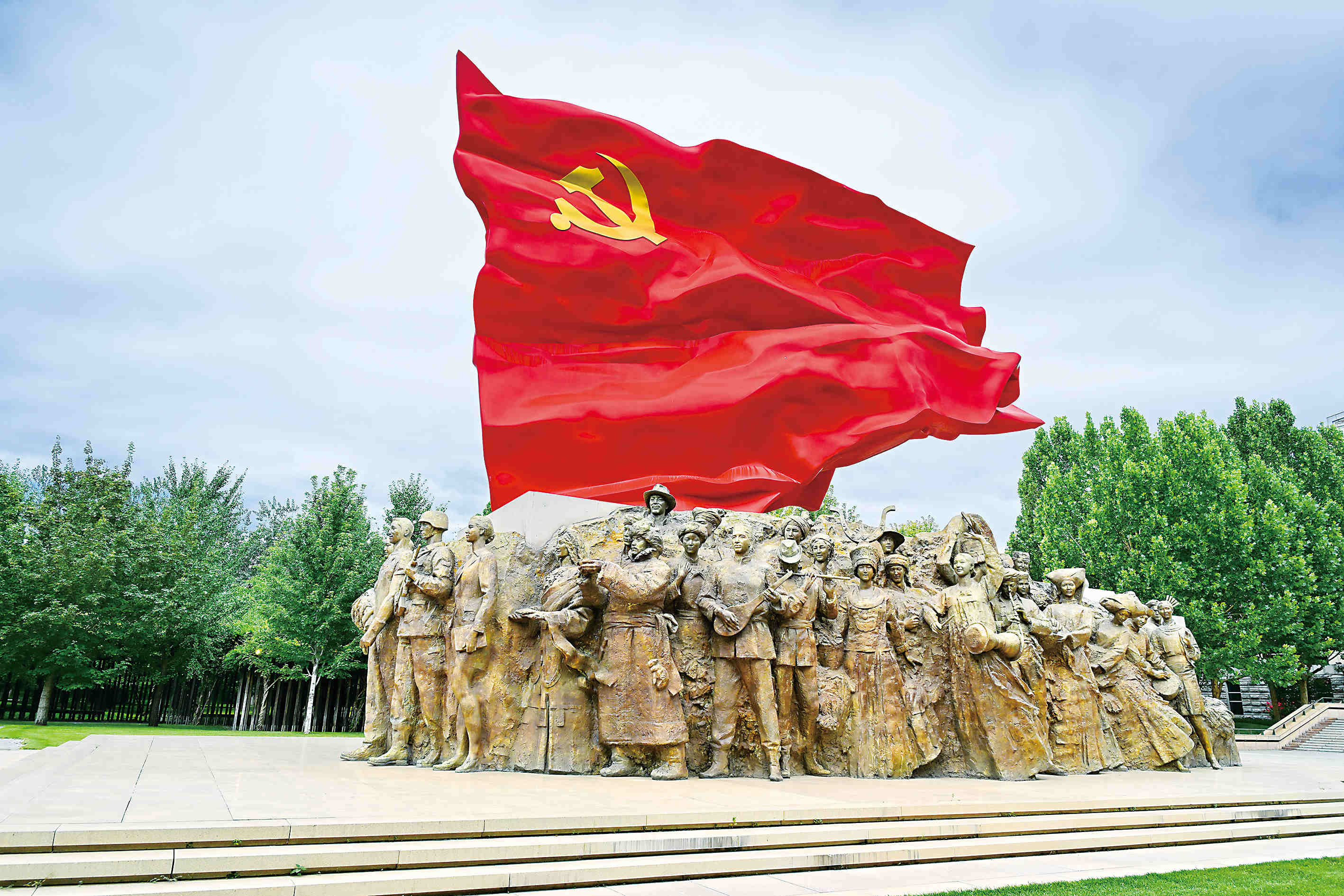 在以習近平同志為核心的黨中央堅強領導下,在中國特色社會主義偉大旗幟引領下,眾志成城,堅定豪邁為強國建設、民族復興偉業努力奮斗。圖為大型組雕《旗幟》。 圖片來源:視覺中國
