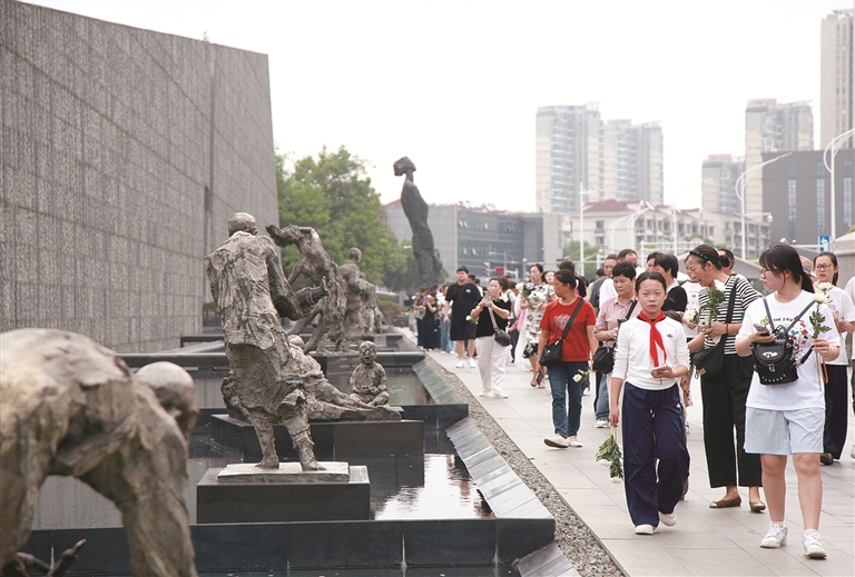 近日,人們參觀侵華日軍南京大屠殺遇難同胞紀念館,緬懷遇難同胞,銘記歷史。 圖片來源:視覺中國