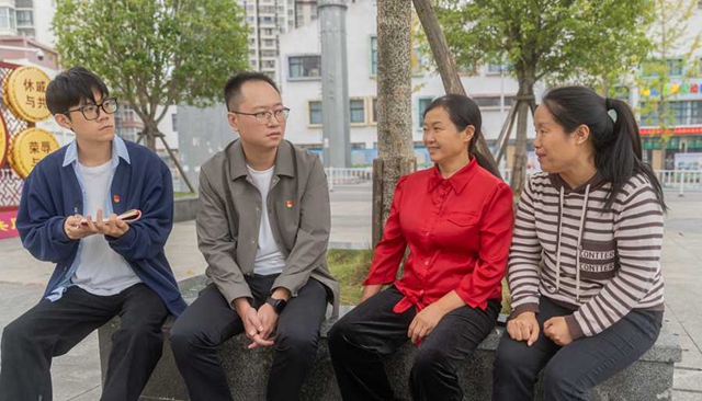 圖為吳巍(左二)在貴州省銅仁市萬山區某社區了解惠民政策落實情況。陳光明 攝