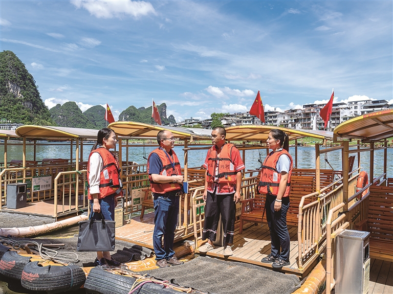 廣西壯族自治區陽朔縣紀委監委把履行生態環保責任作為政治監督的重點,加強對漓江沿岸生態環境保護的監督檢查,堅決整治生態環境保護主體責任不落實、制度執行不到位、問題整改不徹底等問題,以有力監督筑牢漓江生態屏障。圖為9月26日,該縣紀檢監察干部在漓江沿岸走訪了解有關情況。夏立慧 攝
