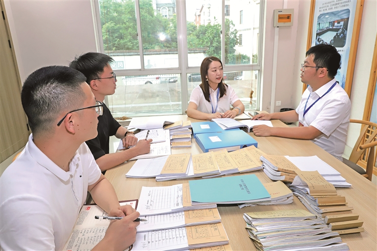 10月13日,浙江省東陽市紀檢監察干部在該市江北街道辦事處就黨員干部責任落實等方面情況開展監督。包筱玲 攝