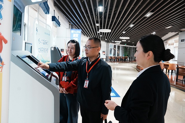 圖為趙江(中)在水城區政務服務大廳了解惠民補助資金發放情況。楊俊淇 攝