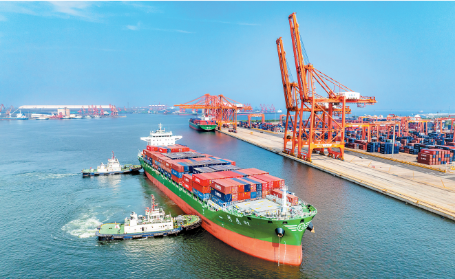 近日,一艘貨輪在靠泊唐山港京唐港區集裝箱碼頭。唐山港貨物吞吐量穩居世界沿海港口第二。記者 趙杰攝