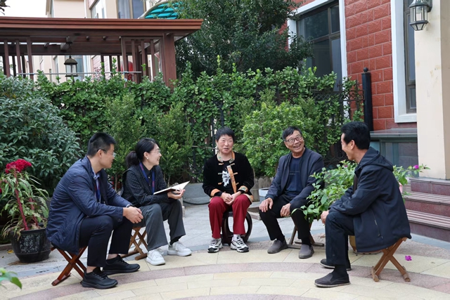 圖為壽光市紀(jì)委監(jiān)委干部正在與村民圍坐交談,傾聽群眾訴求、收集意見建議。 李紅 攝