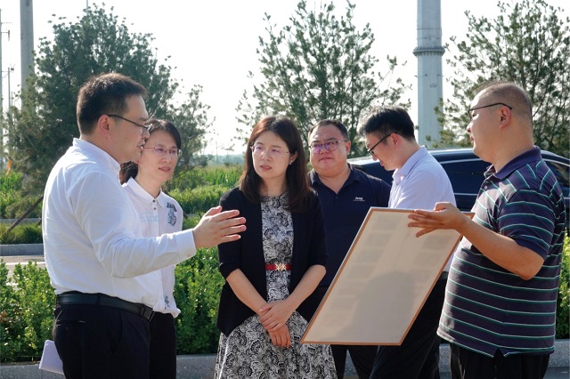 圖為李海燕(左三)與相關部門同志在濟南新舊動能轉換起步區,現場推動解決某項目建設過程中遇到的“中梗阻”問題。資料圖片
