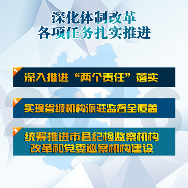 2016年,我省堅持突出重點、整體推進,不斷深化紀律檢查體制改革,重大改革任務主體框架已經搭建,長遠改革任務正在積極探索,各項改革任務扎實推進。
